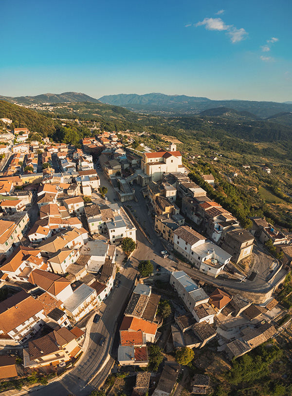 altura fra la Valle di Comino e la Media Valle del Liri, il centro storico è